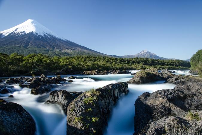 We will tour the beautiful Llanquihue Lake, seeing the imposing Osorno Volcano in front of us, we will visit the Vicente Pérez Rosales National Park where the Petrohué Falls are located to continue our trip bordering the lake where we will arrive at the beginning of the Carretera Austral, to advance the first kilometers, but not before sailing by ferry until reaching the town of Hornopirén.